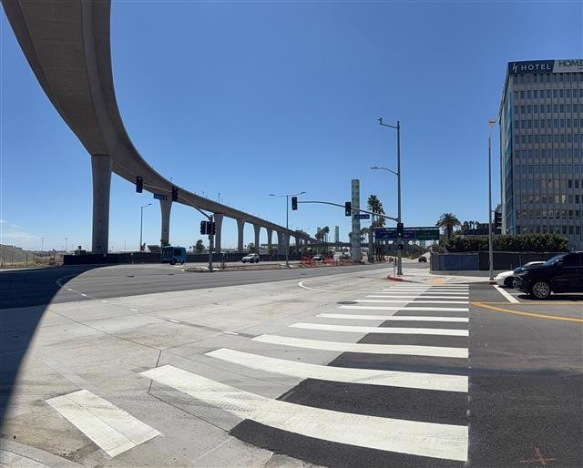 The one-and-a-half-mile roadway, which runs parallel to Century Boulevard, is a new east-west roadway alternative that includes brand new intersections serving Bellanca Avenue, Aviation Boulevard and Concourse Way, as well as complementary landscaping and sidewalks.