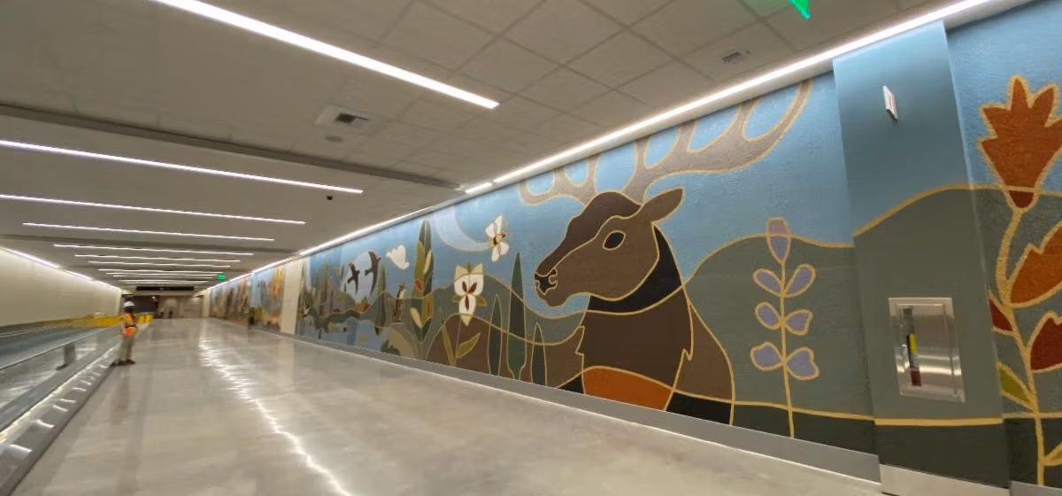 The airport believes that passengers will be delighted to see the four seasons of Utah represented as they make their way through the tunnel.