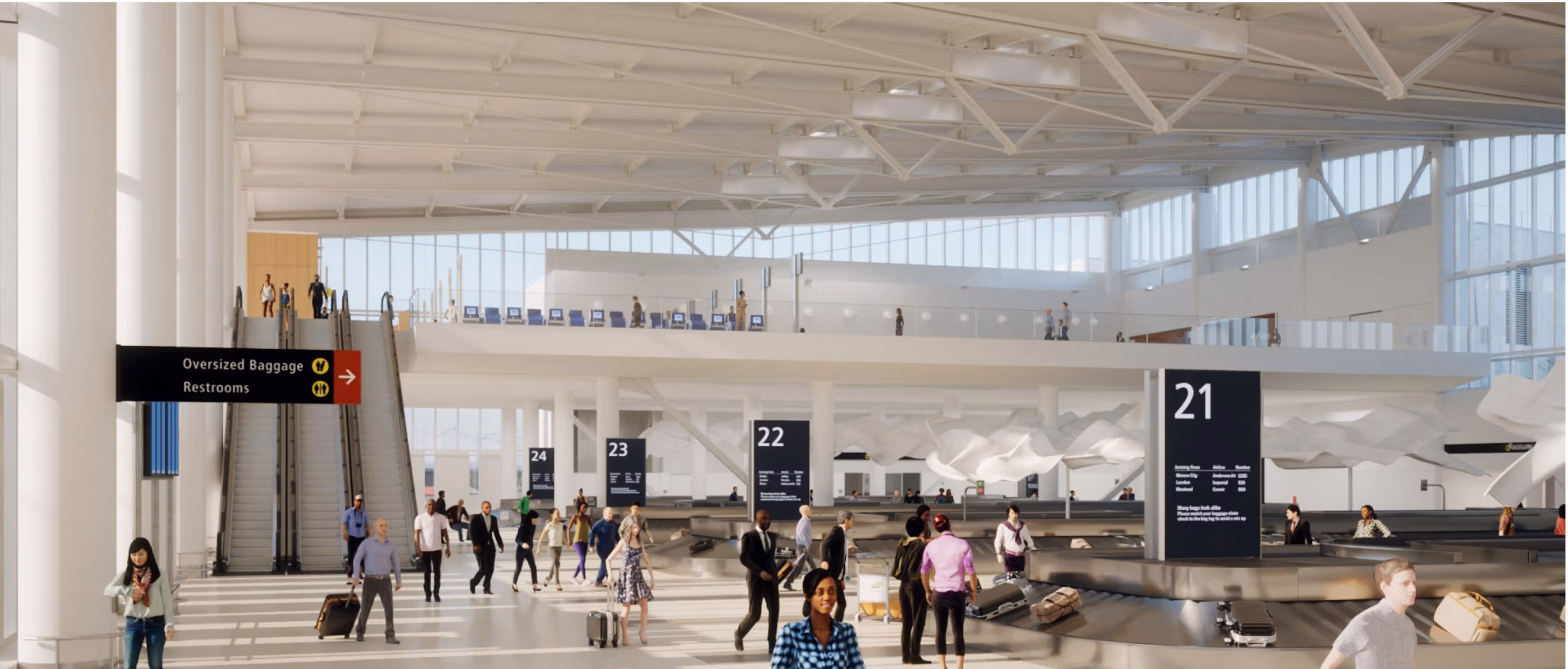 The IAF program includes three new elements: A 450,000-square-foot grand hall for baggage claim and customs processing; an 85-foot-high aerial walkway that will directly connect passengers from the South Satellite to the Grand Hall and a new international corridor connecting arriving international passengers on Concourse A.
