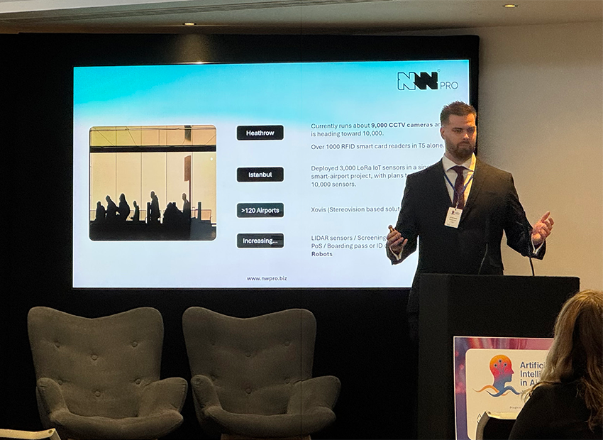 In the Innovation Slot that followed, NW PRO’s managing director Jay Richards used his time on the podium to highlight the benefits of integrating the thousands of sensors spread across airport sites and combining them with AI to “generate real value” for operators in terms of operational efficiency, security optimisation and revenue generation.