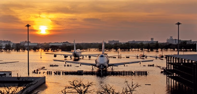 In 2011, extreme rainfall caused Bangkok’s main river to flood a large part of the city, including Don Mueang International Airport (pictured above).
