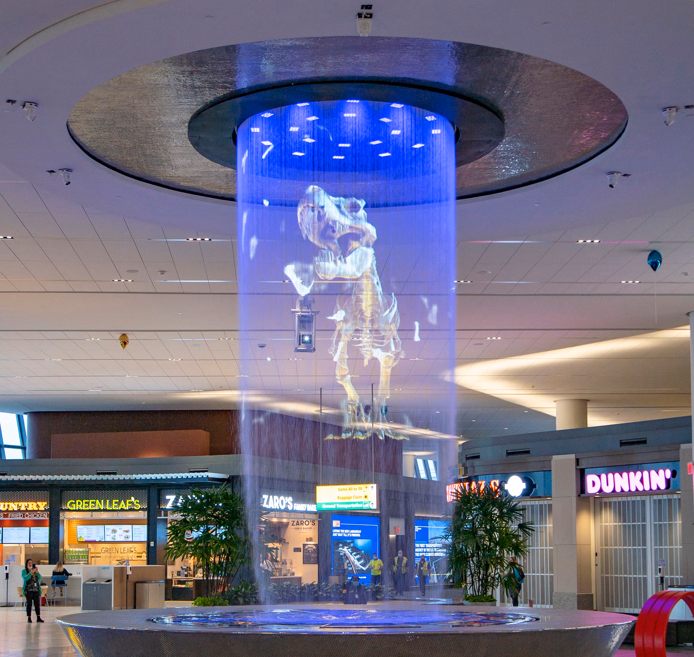 This is the only installation located in the Americas, and the only one located within an airport globally. The system creates a captivating show for passengers as they are moving through the terminal, providing them with entertainment and tranquility as they prepare for their travels.