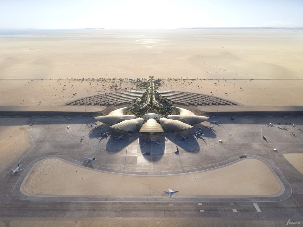 “Not only is the airport sustainably designed, but aesthetically it takes inspiration from the forms of the surrounding desert, the green oasis and the sea.